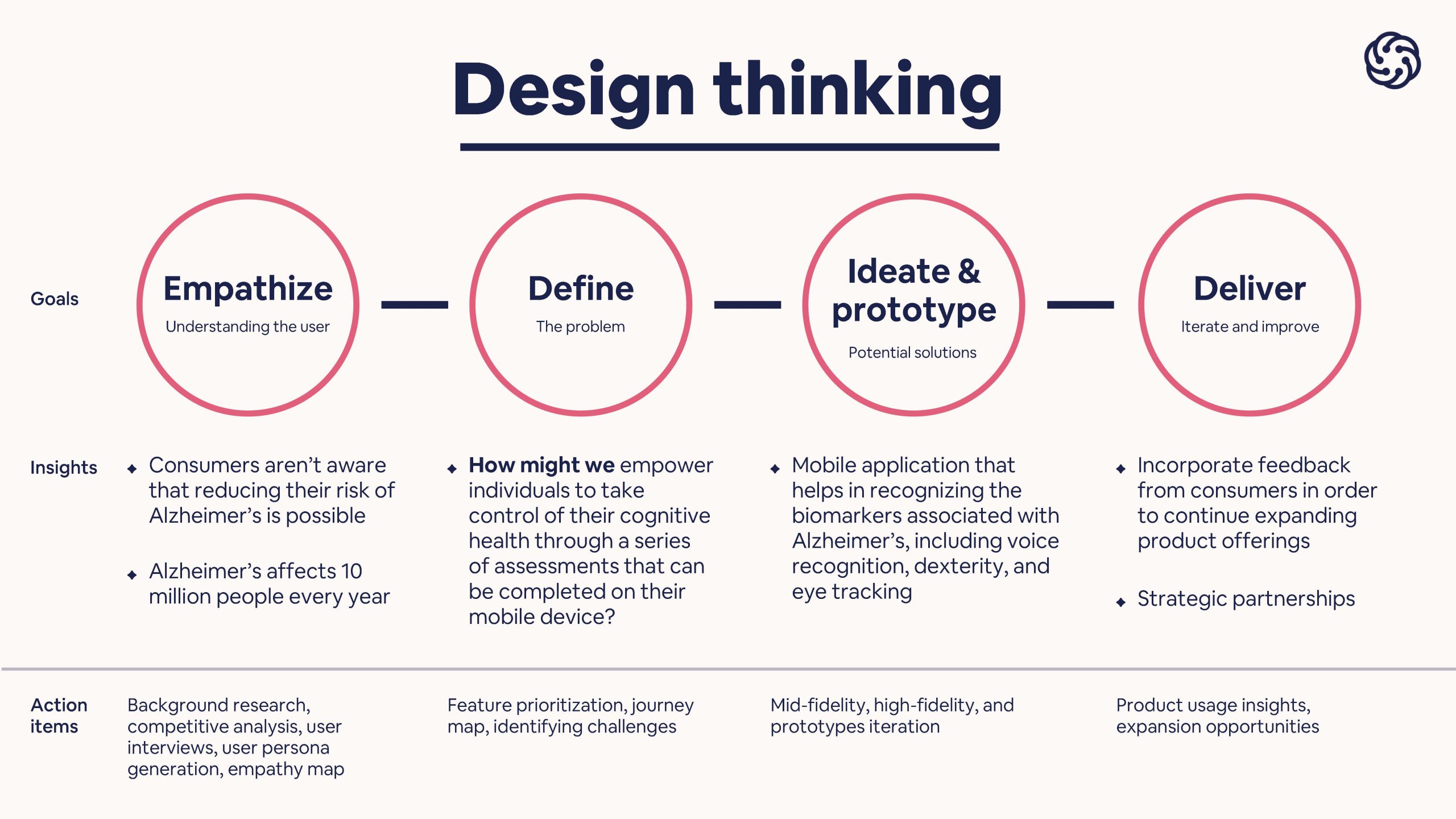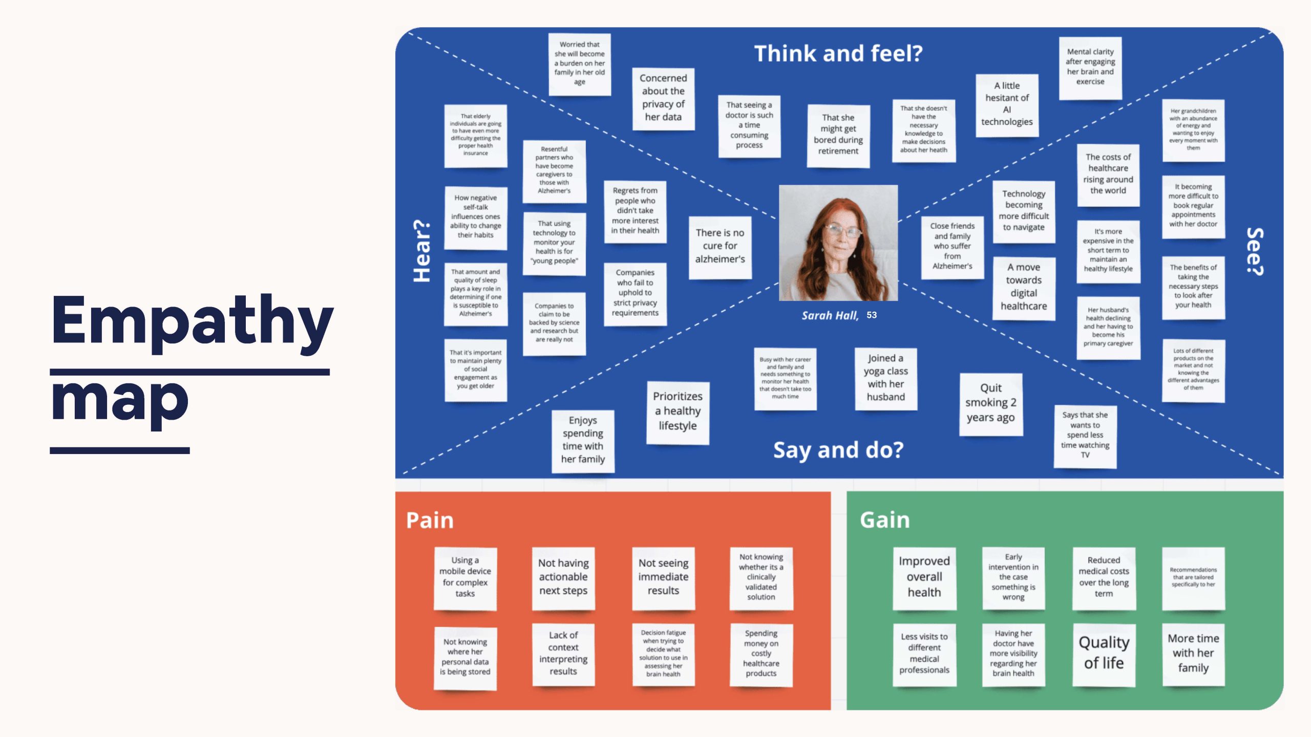 Our Design Thinking process began with in-depth user interviews, leading to the creation of user personas and empathy maps to deeply understand user needs, pain points, and motivations.