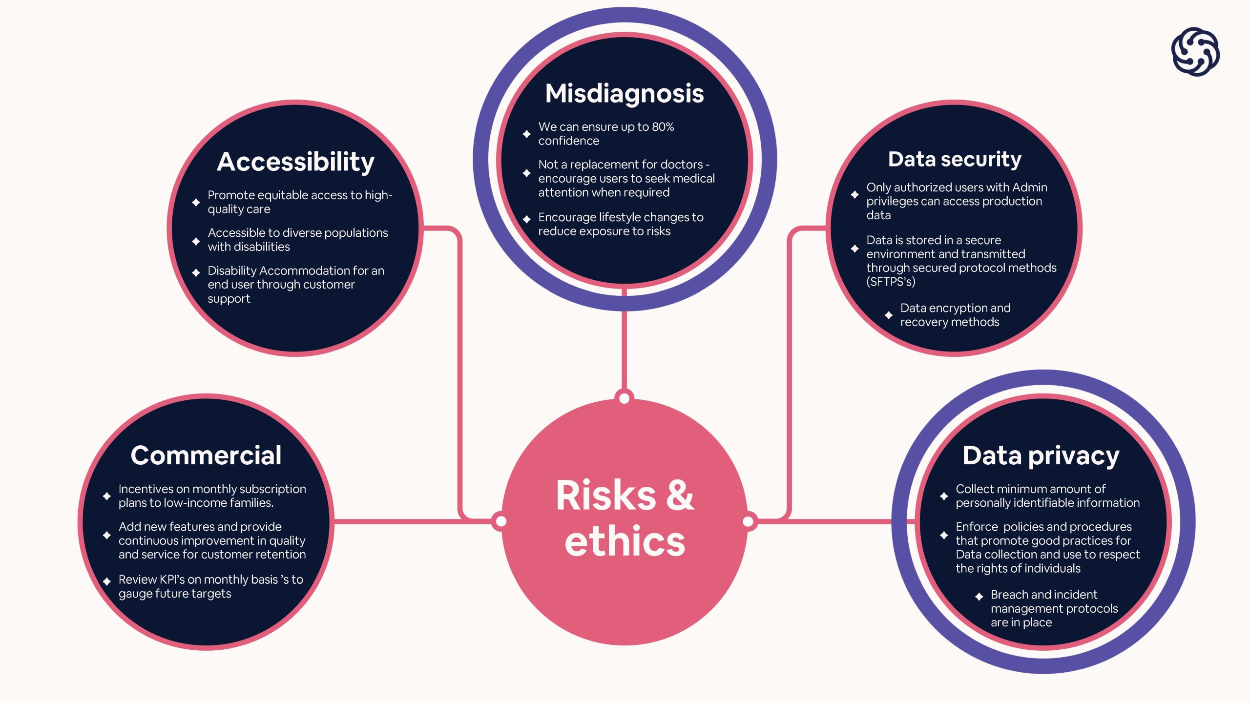 Highlighting AidBrain’s potential societal impact, our commitment to ethical AI practices, data privacy, and mitigating risks like misdiagnosis and discrimination.