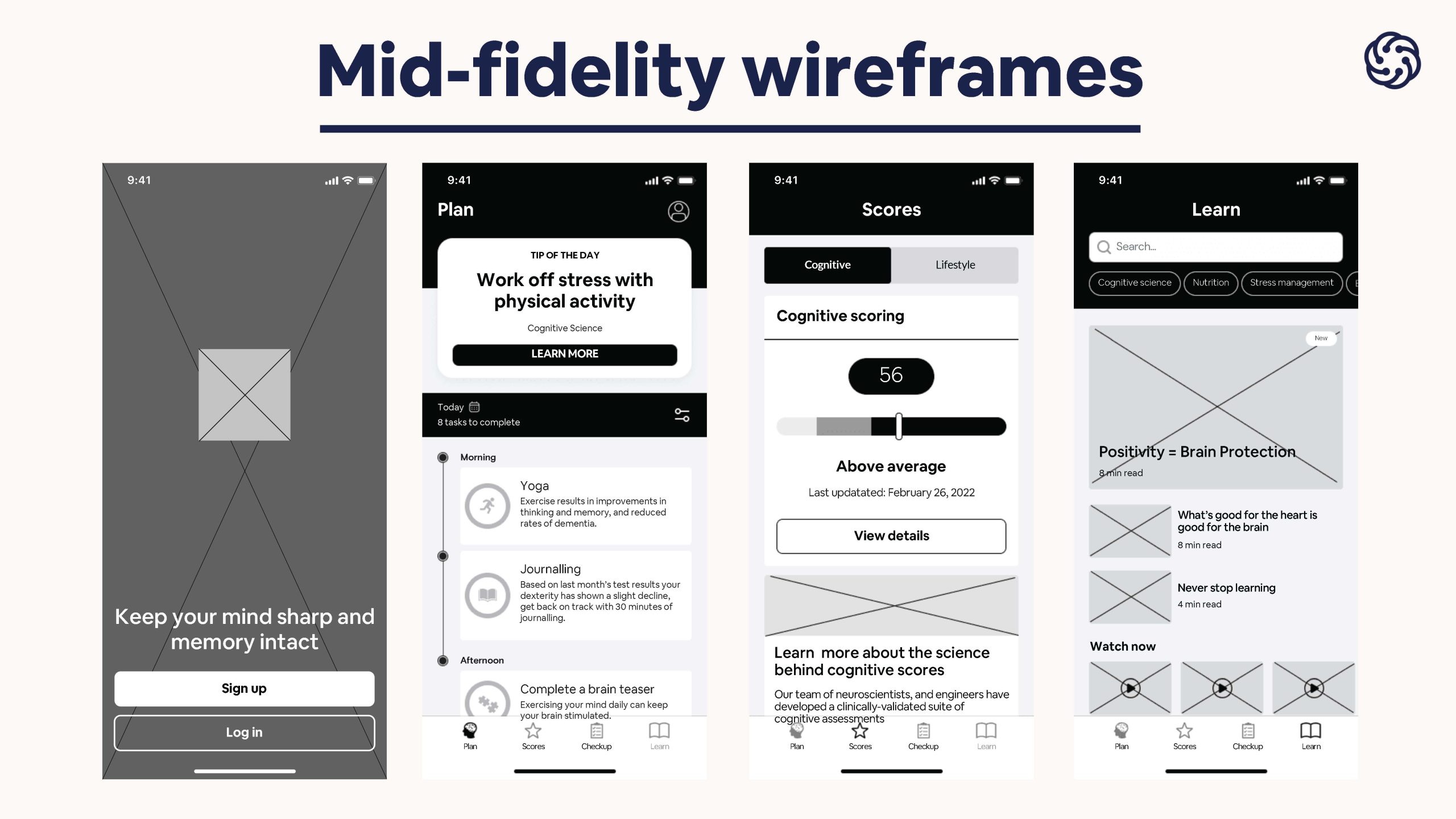 Showcasing our user-centered design process, from initial wireframes to defining the Minimum Viable Product based on Design Thinking principles.