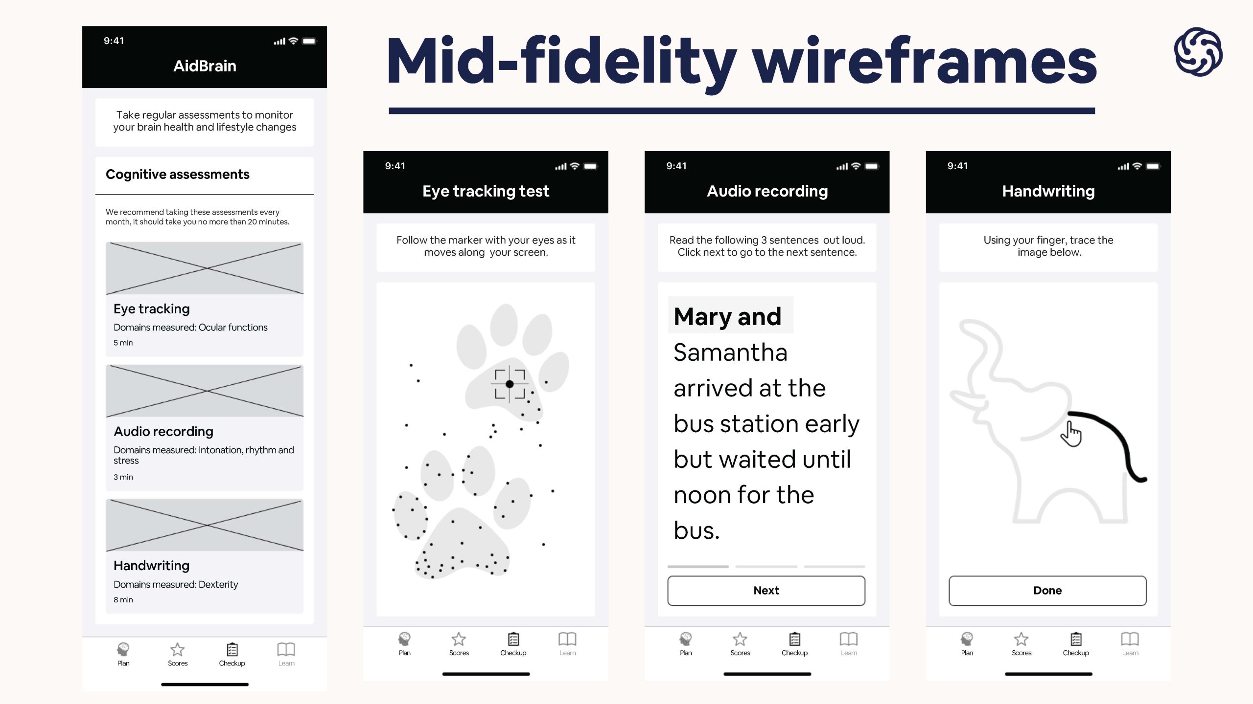 AidBrain is an “AI for Good” initiative collaboratively developed by our team (“Team Dufferin”) during the Master of Management in AI (MMAI) program at Queen’s University. We conceptualized and designed an AI-powered mobile application aimed at the early, non-invasive detection of Alzheimer’s disease by analyzing digital biomarkers captured via smartphone sensors.